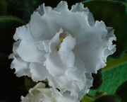 Гигантские цветы, даже первые — до 7 см. Великолепной, складчатой формы. Махровые и полумахровые, белые, с синим центром и синей каймой цветы. Светлые листья. | Moonlit Snow (Sorano) |